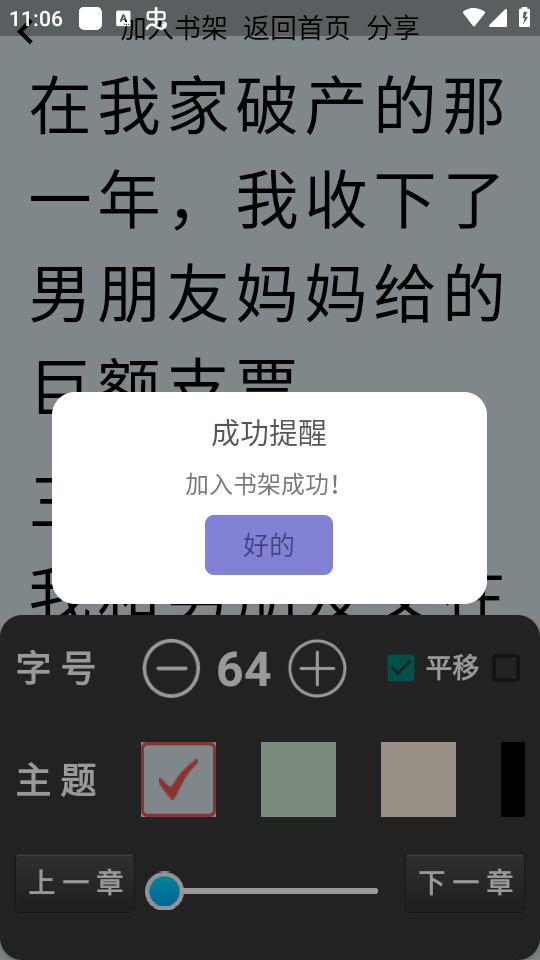 3、支持自定义字体大小和样式,打造最舒适的阅读环境。