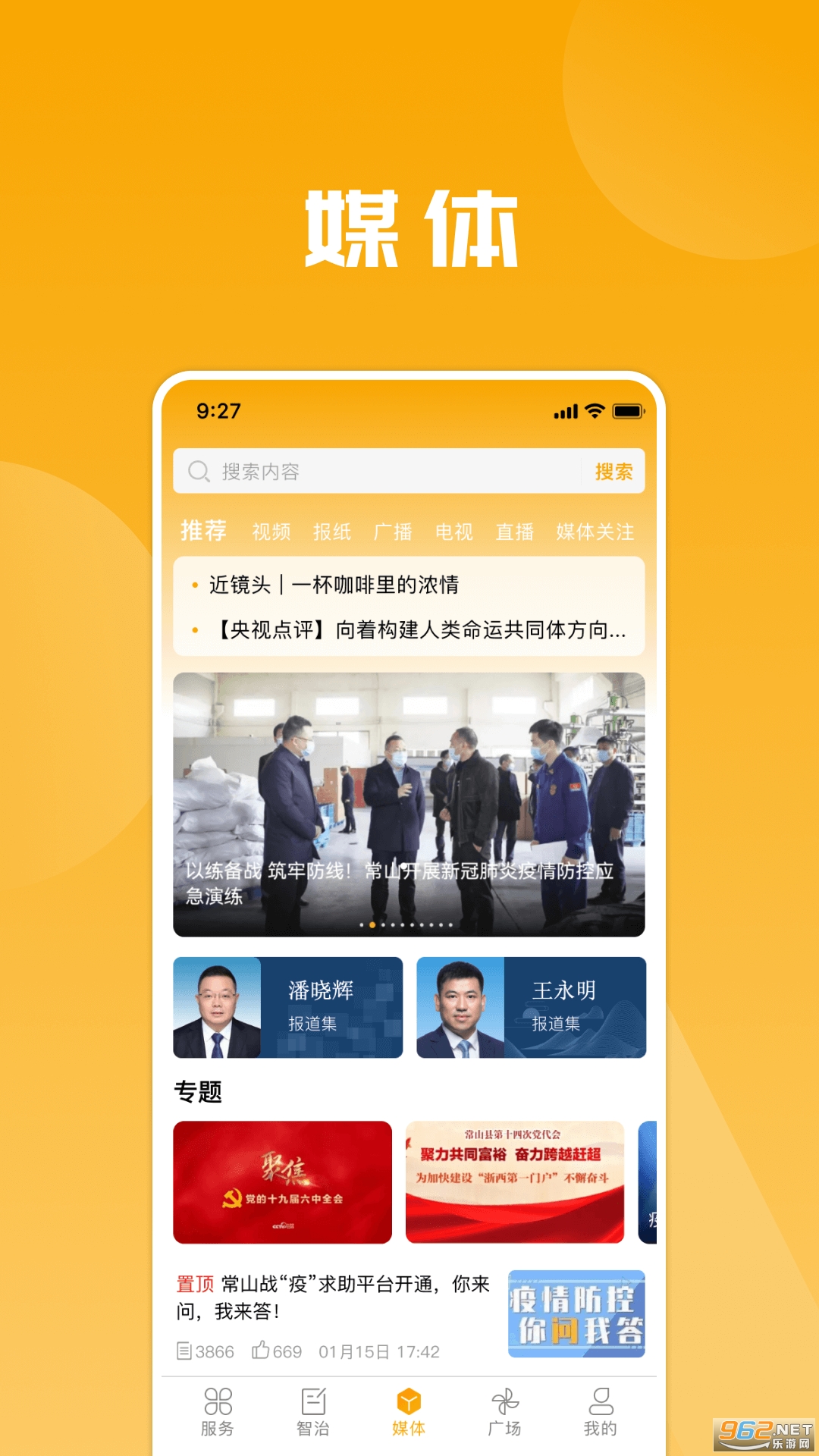 “媒体”板块包括头条、视频、报纸、广播、电视、直播、媒体关注等内容,第一时间全方位浏览常山权威资讯,让你成为“常山通”。