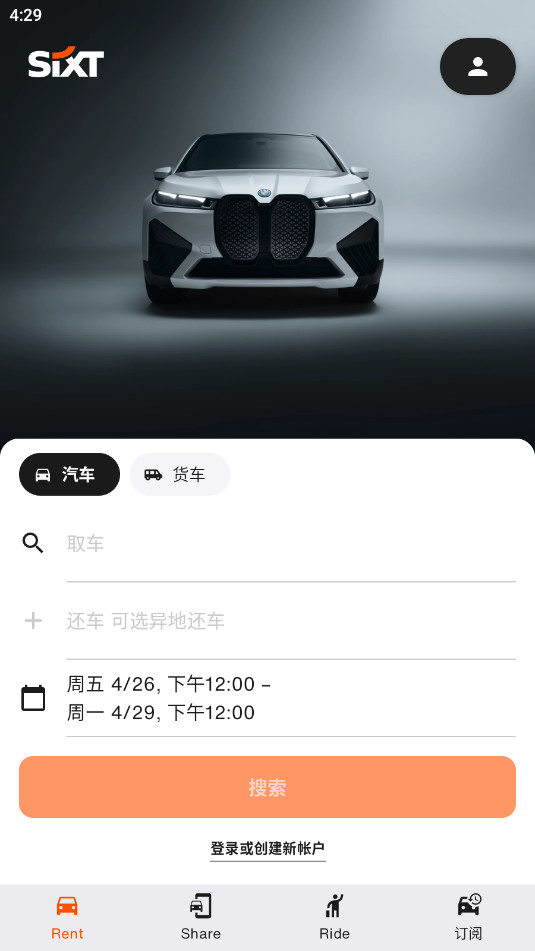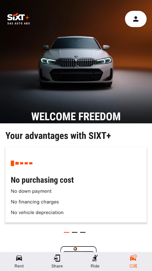 使用SIXT APP软件,只需几秒就可以完成租车预定!包括查询租车价格、寻找最近门店的信息、查看门店指引、挑选车辆、预定车型,登录Sixt账号,可以更快管理您的订单。