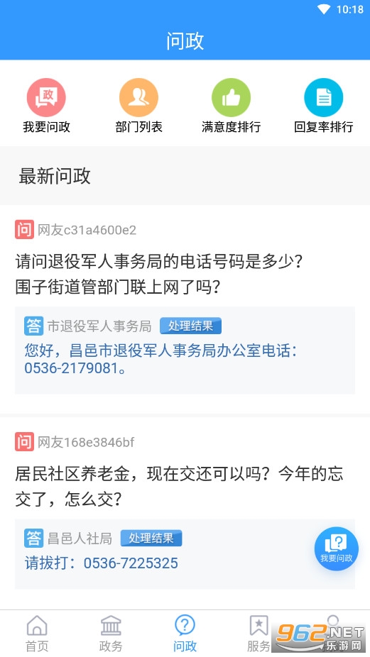 2、支持在线问政服务,帮助用户解决生活中各方面的问题。