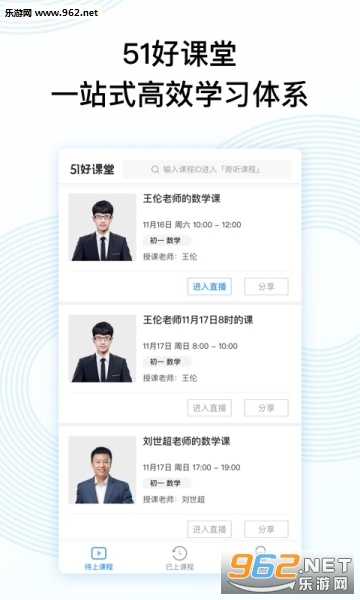 51好课堂是为中学生量身打造的互动辅导工具。在线视频面对面,课上互动效果好。足不出户,随时享受老师上课服务。