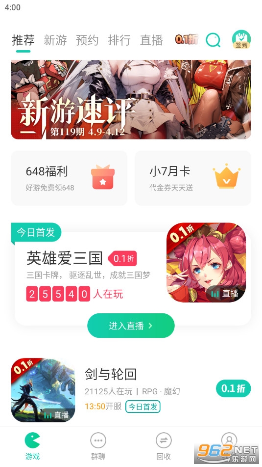 一款轻松的手游福利平台,给你带来更高的折扣,提供更多有趣的手机游戏等你体验,还有着超多的功能,你还可以进行账号交易等功能,还可以在这里和其他的玩家进行互动聊天,推荐给有需要的用户。