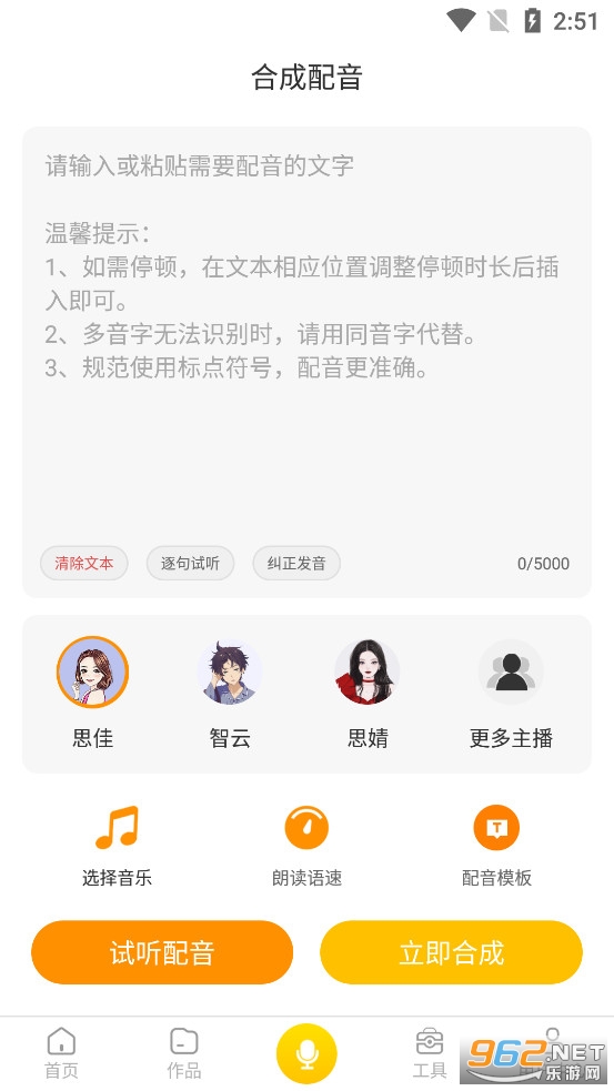 1、在线文字转语音:输入文字秒转语音,自动化合成;
