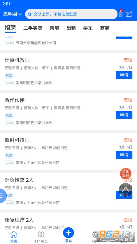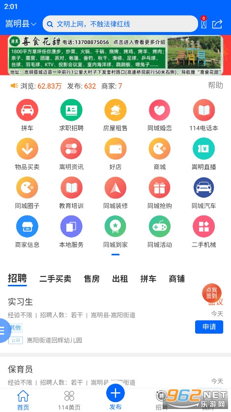 《嵩明生活网》一款专为崇明本地居民打造的生活服务软件,集资讯、二手车、求职、吃喝玩乐、租房等功能于一体。用户可以通过这款软件轻松获取崇明地区的最新资讯信息,同时享受各种便捷的生活服务。无论是想要了解本地动态,还是查询生活信息,嵩明生活网都能为您提供一站式解决方案。
