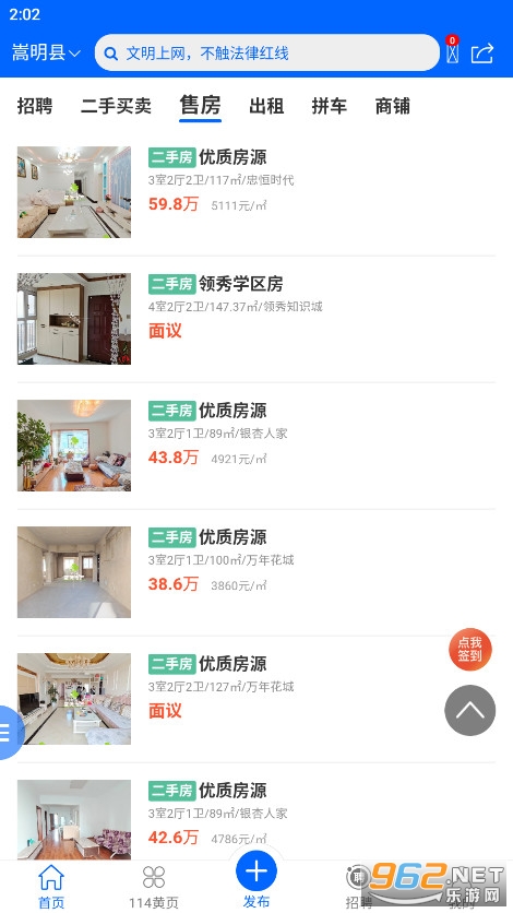 在此可以找到崇明县的海量房源信息,二手房、商铺以及写字楼、楼盘等房源都能找到;