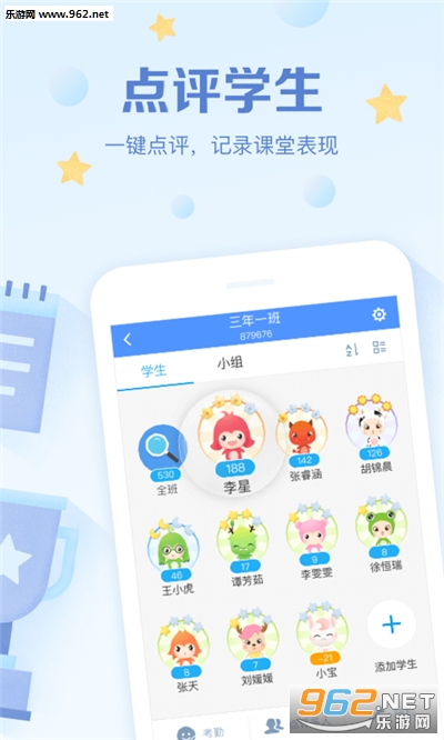 二十几个可爱的卡通头像就代表着每个学生,不管是在课堂还是在课余时间,都可以根据预先设定的评价项目随时对学生进行评价记录,孩子们每天盯着自己的小卡通头像,想着怎样提高它的分数,老师则用这个电子评价系统很好地管理班级。