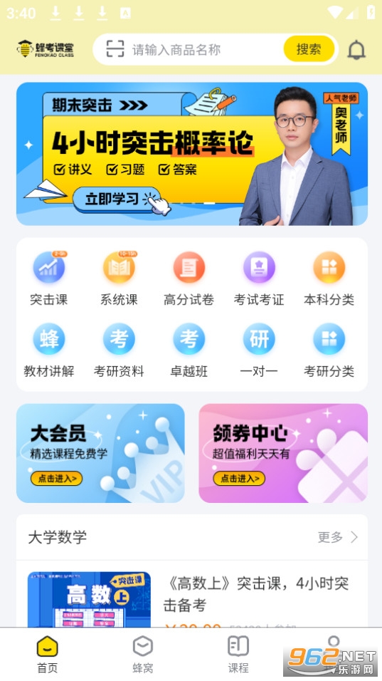 蜂考课堂,能够陪你一起度过大学四年时光的学习平台,