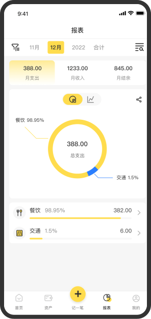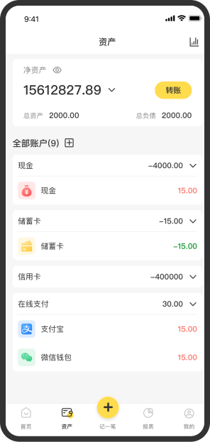每年、月、周的收入支出尽在其中,添加成员一起记账,投资理财