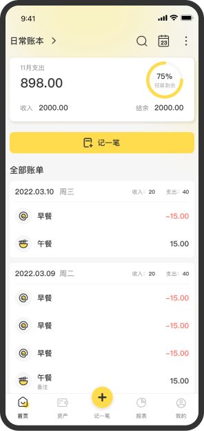 直观显示消费支出,超支消费给你带来视觉冲击,让你不敢乱花钱