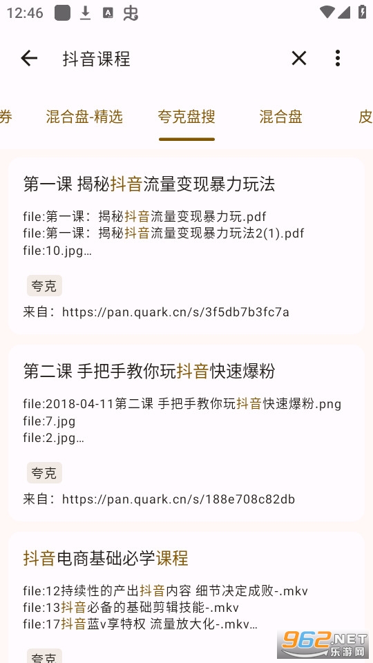 2.打开混合盘搜索首页,输入你想搜索的内容,比如抖音课程