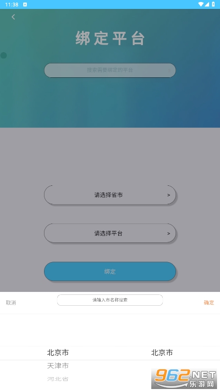 选择省市-平台-点击绑定