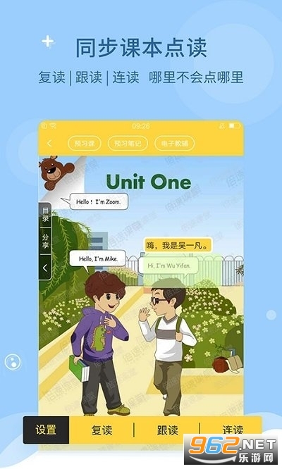 1、首先打开倍速课堂app最新版,点击英语点读;