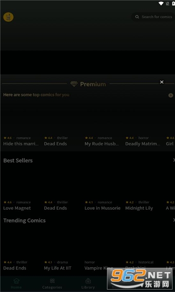 在应用程序中浏览或搜索感兴趣的漫画。