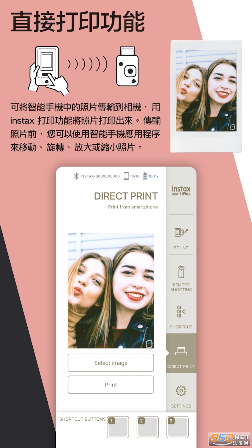 (4)直接打印(用智能手机打印)可以将存储在智能手机上的照片发送到相机,以便将其输出为instax打印件。