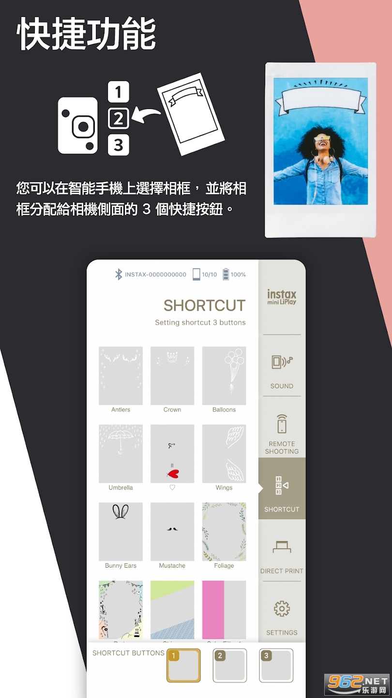 (3)快捷键(向右跳到您想要的帧)使用本应用程序选定的帧可以按照您的喜好设置为相机侧面上的三个快捷键。