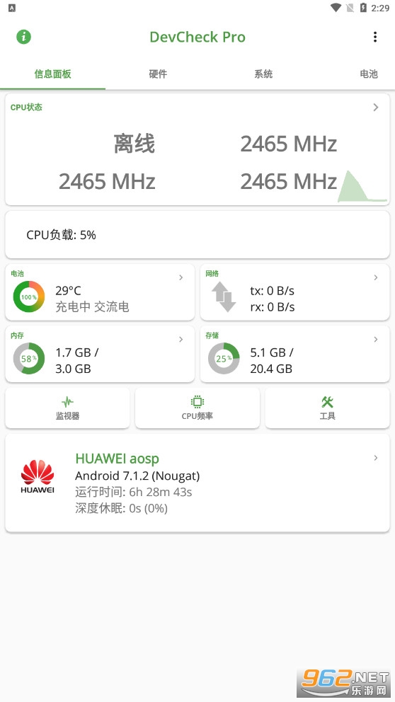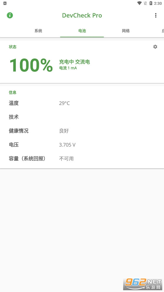 DevCheck pro 是一款功能强大的手机硬件和操作系统信息检测查看软件,提供了系统、硬件、电池等多方面的详细信息检测查看,无论是安卓版本、系统是否 root,还是电池健康度、RAM 带宽/通道等信息,都能够正确显示。
