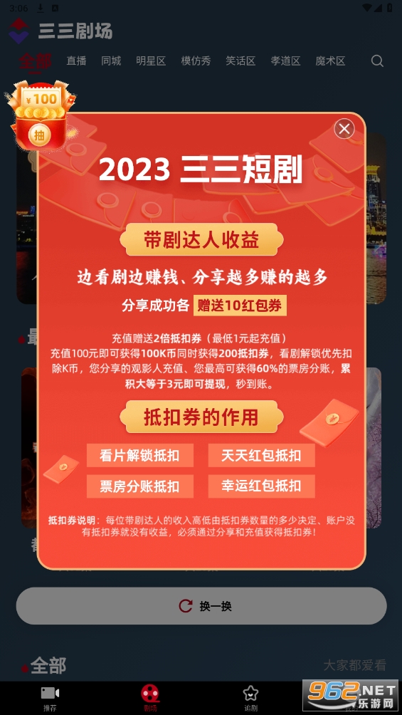 三三剧场红包版是一款专为喜欢刷短剧领红包的用户设计的应用程序。它提供了丰富的短剧资源,并结合了红包活动,让用户在观看短剧的同时还能获得奖励。