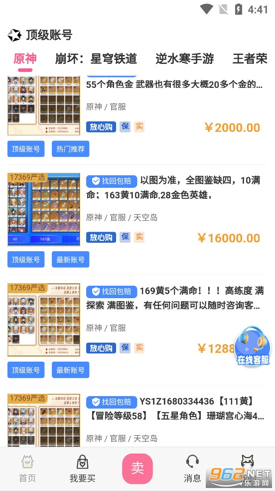 《17369账号交易app》是重庆多塔互娱科技有限公司推出的一款为朋友们打造的游戏账号交易平台,平台中有着大量的账号资源,有着原神、王者荣耀、和平精英等众多热门游戏的账号,朋友们可以在平台中去查看账号的信息,了解角色属性、装备、皮肤等各种信息。
