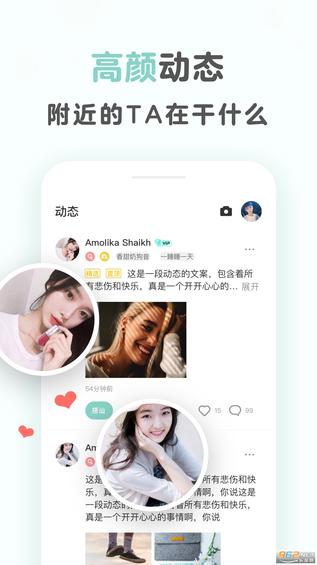 可以在平台上认识更多的朋友哦!还有最新的用户动态都能看到,高颜值的男神女生都在平台上汇集,感兴趣的话随时来进行寻找哦!根据用户的喜好来追寻最新的小伙伴哦!赶紧加入平台中去寻找吧