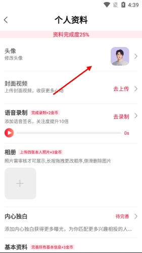 个人资料:用户可以完善个人资料,介绍自己的兴趣爱好等信息。