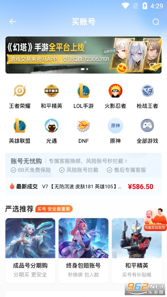 【游戏账号交易,账号找回包赔】