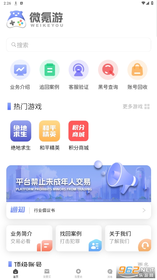 3、差价。平台差价少,卖家挣取钱财相对较多。微氪游账号交易平台是温州微氪游网络科技有限公司旗下的APP,温州微氪游网络科技有限公司,成立于2026年,位于浙江省温州市,是一家以从事互联网和相关服务为主的企业。