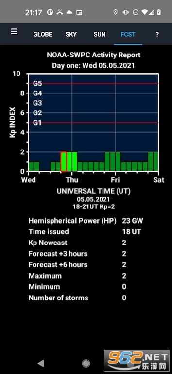《极光预测appAurora Forecast 3D》一款强大的工具,它以3D形式呈现地球,帮助用户追踪极光在天空中的位置。用户可以从地球上的任何位置进行观察,太阳的照明效果和实时极光椭圆形大小和位置都一目了然。此外,该应用程序还提供了短期和长期预报,最多可提前6小时和3天进行预测。