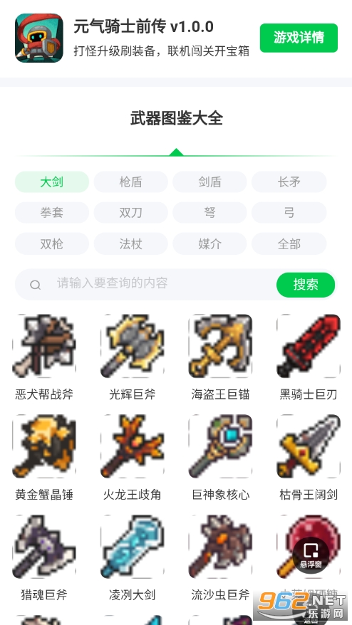 武器羁绊产出大全工具!为《元气骑士前传》武器羁绊产出大全工具,包体仅1M,下载安装后可在本地直接查阅游戏内所有武器解析;