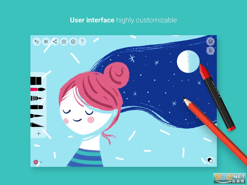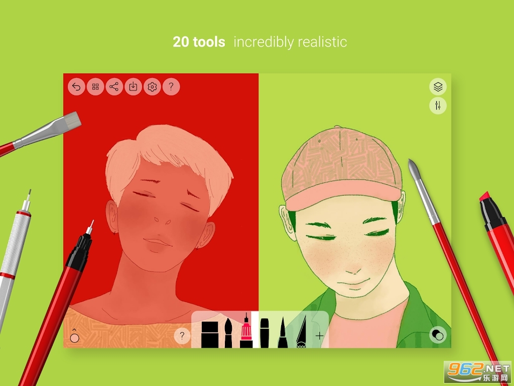 画笔的设计使每一笔都像纸上的画笔一样生动真实,根据你的动作调整压力、角度和宽度。