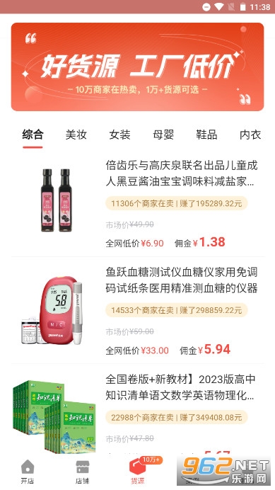涵盖各平台热销商品,一手货源,让您可以获得和大主播同样的价格及佣金,通过短视频、直播带货轻松赚到钱