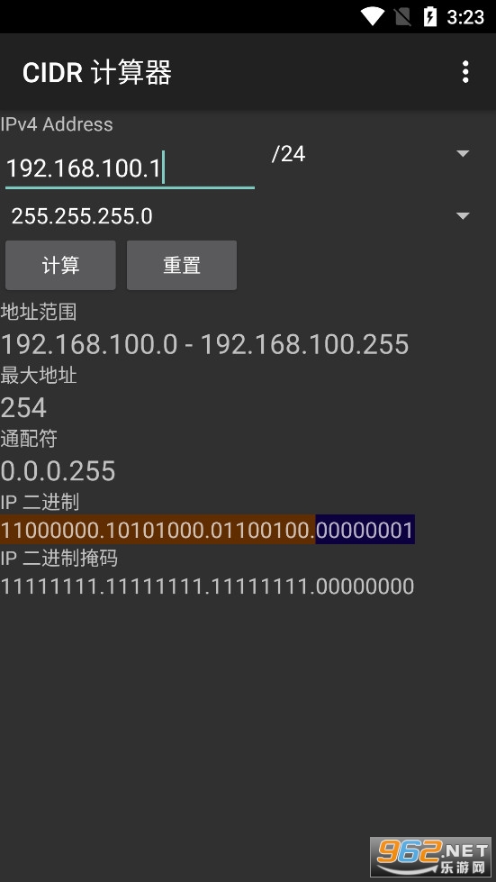 《CIDR计算器手机版》是一款为朋友们打造的网络地址计算器软件,朋友们在界面中输入ip地址,点击计算即可计算地址范围、通配符、ip二进制、ip二进制掩码等,也可以将ip计算切换为IPv6模式,可以旋转转换器功能来进行十进制、二进制、十六进制之间转换。