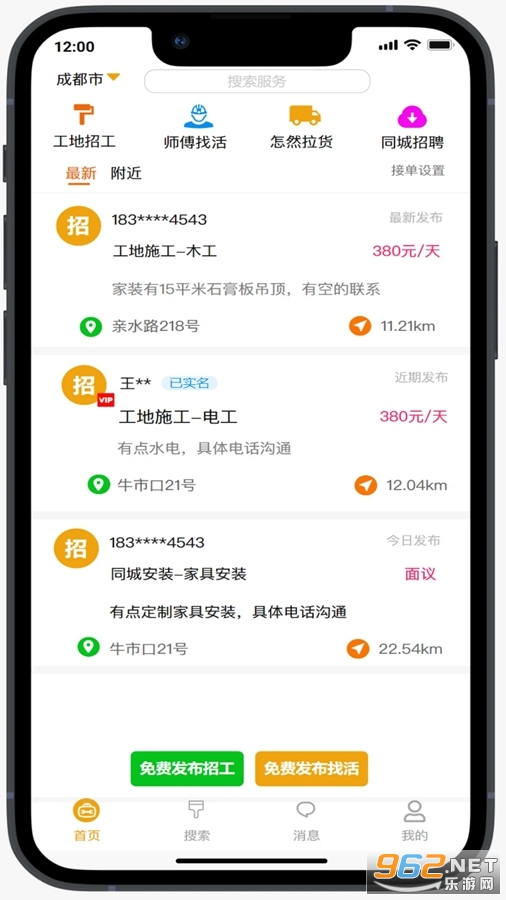 工人找活:附近工地好活优先展示,快速高效找到好活。