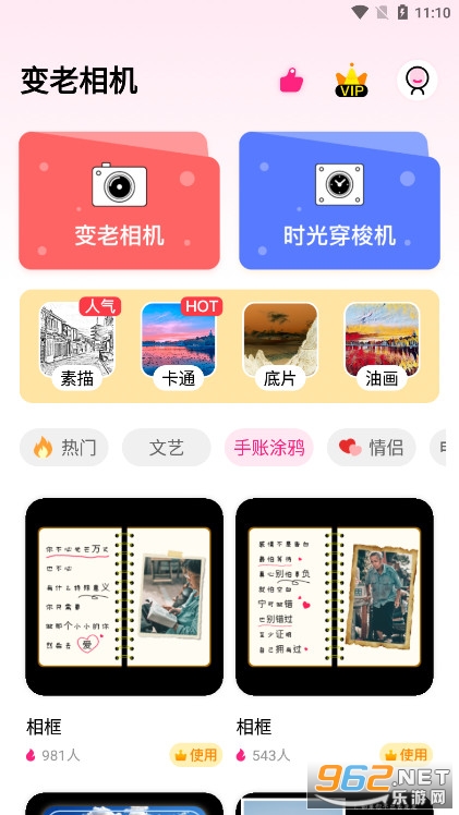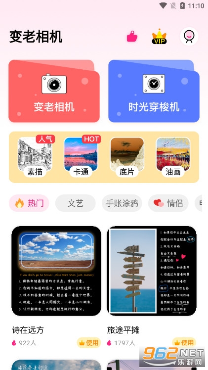 *变老相机:选择或者拍照几秒钟展示60岁后的样子,感受时光的魔力。