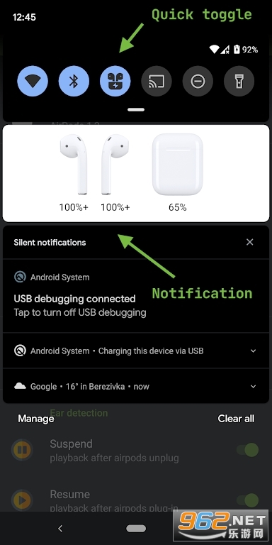 《AndroPods》一款旨在提供更好蓝牙耳机体验的应用程序。通过安装该应用,用户可以在安卓设备上获得类似iOS操作体验,包括苹果设备上的一些功能。此外,该应用还具备一些额外的功能,以提供更全面的使用体验,使苹果耳机的操作更加灵活。