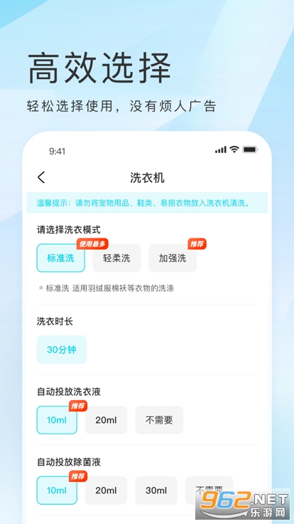 海乐生活是一款方便快捷的手机洗衣软件。拥有先进设备和专业团队,提供上门取送服务,以确保高质量的洗衣服务。可以自由选择洗护类别和时间地点,实时跟踪订单状态,享受便捷的洗衣体验。