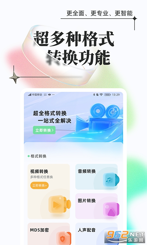 全能转换器: 支持视频、音频和图片格式的转换,满足多种需求。