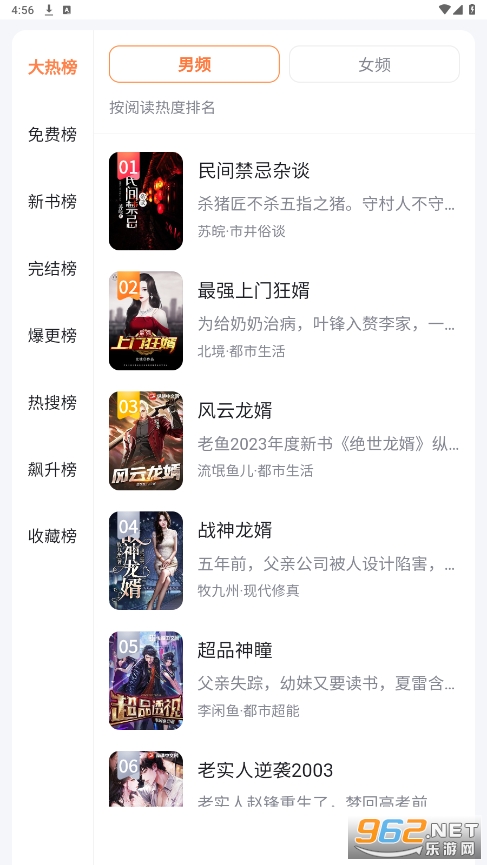 全网小说大全是一款超级好用的看书软件,你在这里总能找到自己想看的书籍,不管你是男生还是女生有会有自己喜欢看的书哦,专门设置了男生榜单以及女生榜单,方便不同性别你们看书,丰富的资源完全免费的阅读,喜欢看小说的用户还在等什么呢!