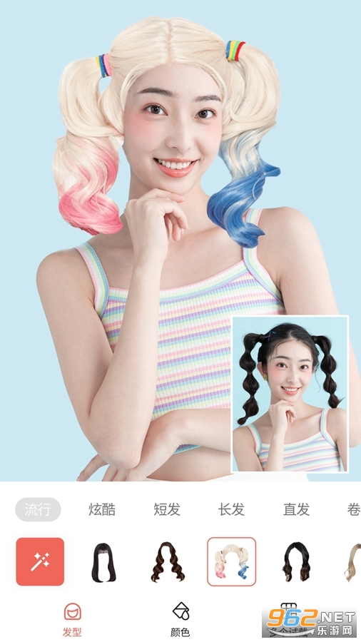 发型测试相机—头发颜色变换、发型设计与脸型搭配,眼镜试戴、口红试色、人工智能抠图P图工具,通过顶尖的人脸识别技术及发型与人脸自适应匹配技术,用它你可以轻松发现让自己最美/最帅的发型及发型颜色。