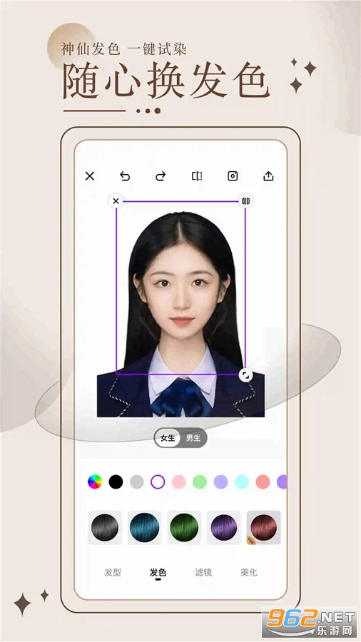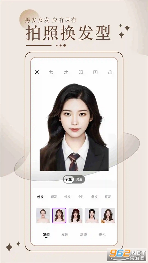 「一键换发型」智能拍照设计发型,秒速换发。