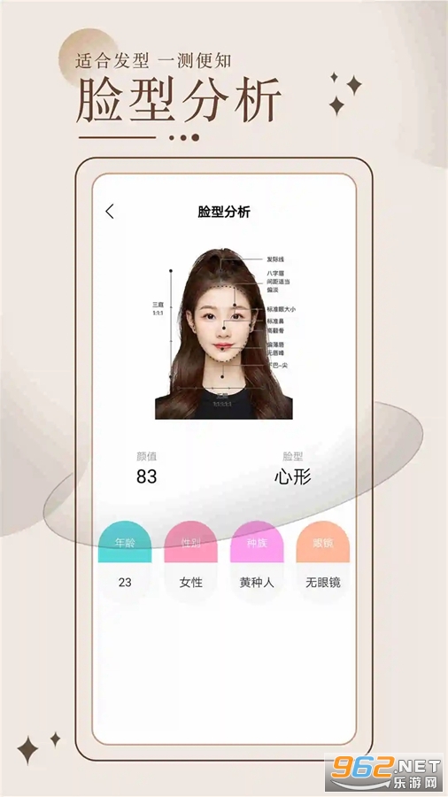「拍照测脸型」智能人脸识别,准确的脸型测试,方便你找到适合的发型。