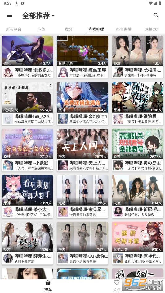 比如星秀、王者容易、LOL、飞车等等。为了防止大家迷路,可以在顶部选择自己感兴趣的分区。