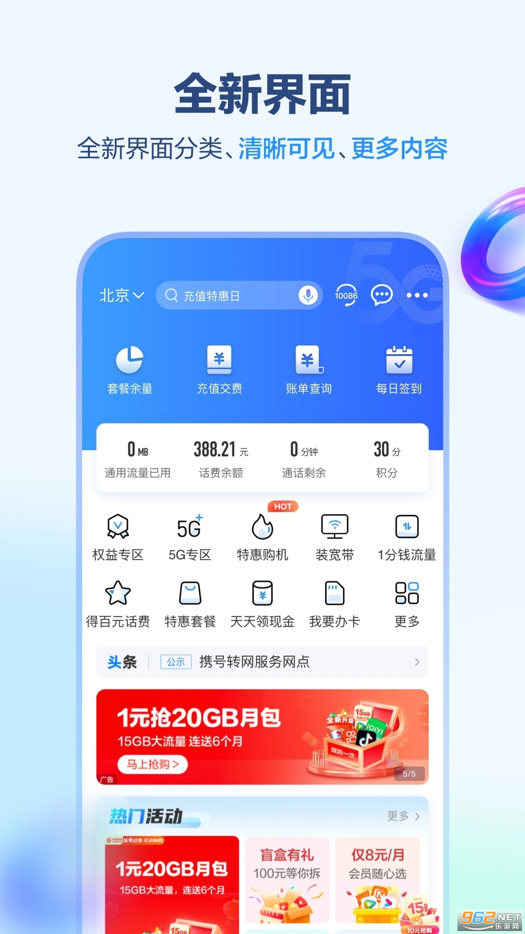 积分商城、业务优惠、最新活动、常用短信及附近营业厅,一触即知轻松掌控。