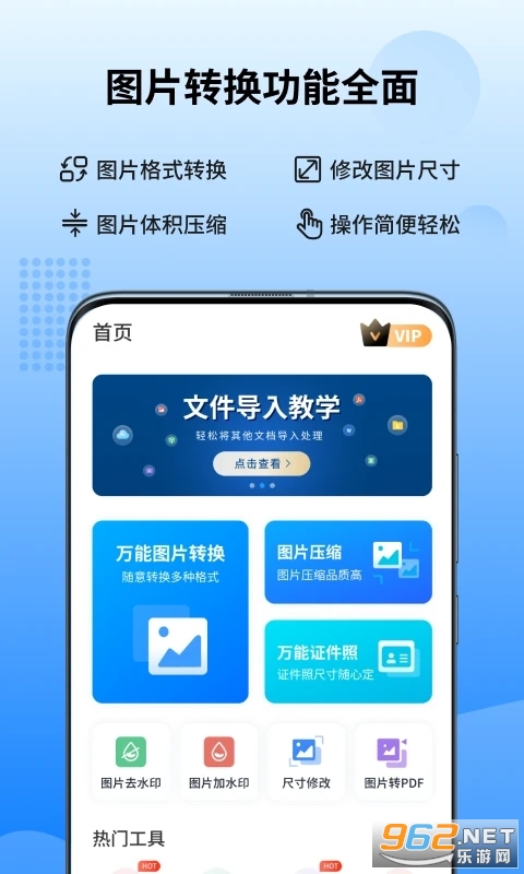 万能图片转换器是一款性能强大同时操作十分简单的图片处理工具。软件内置了图片格式转换、图片压缩以及修改图片尺寸等功能。只需选择对应功能,并导入图片就能一键操作,可满足您日常的多种需要!