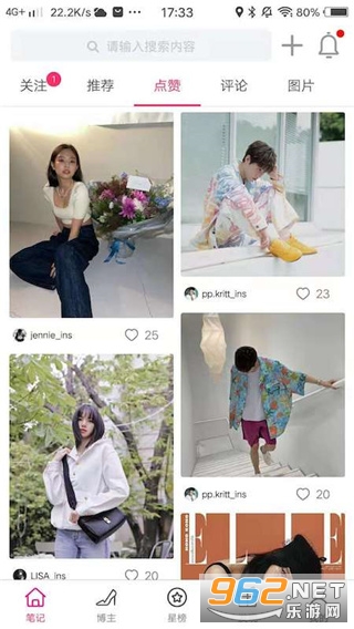 1、在软件搜索框找到喜欢的博主或者是在首页找喜欢的图片;