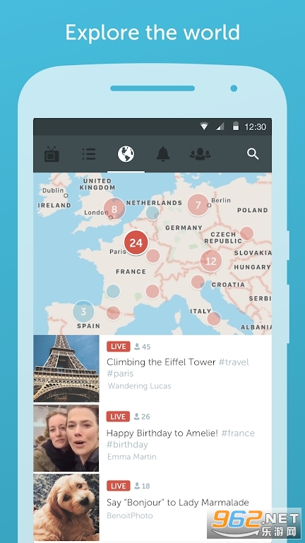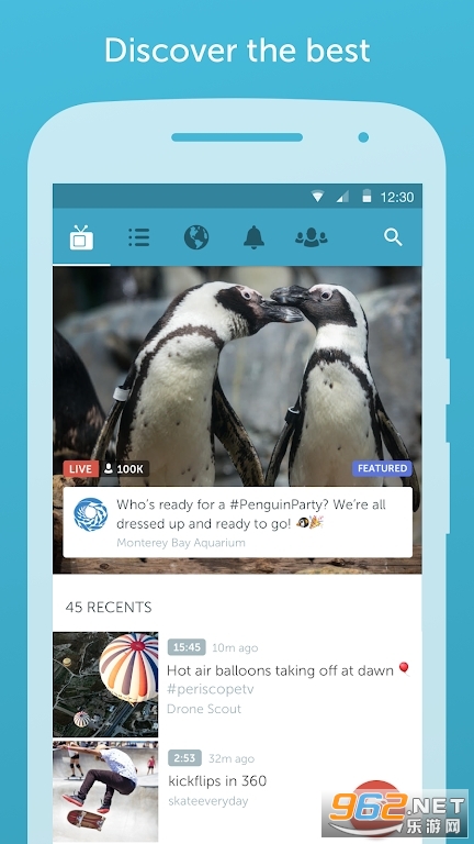 《Periscope直播平台》以让你拿着手机给全世界直播身边的趣事,与亲朋好友一起分享欢乐时光。Periscope可以采用Twitter账户直接登陆,或通过手机号码注册登录。如果使用Twitter账户登录,当自己的直播开启时,在Twitter上可选择自动推送一条直播信息放在twitter上。
