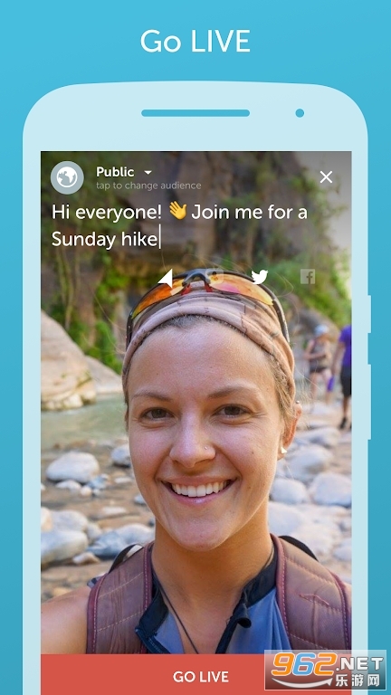 点击应用中间的相机按钮,我们就可以开始自己的视频直播了。在第一次开始前,你需要授权打开摄像头和麦克风,写下标题就可以开始了。这里你还可以选择是否显示地理位置、隐私直播和分享到twitter。
