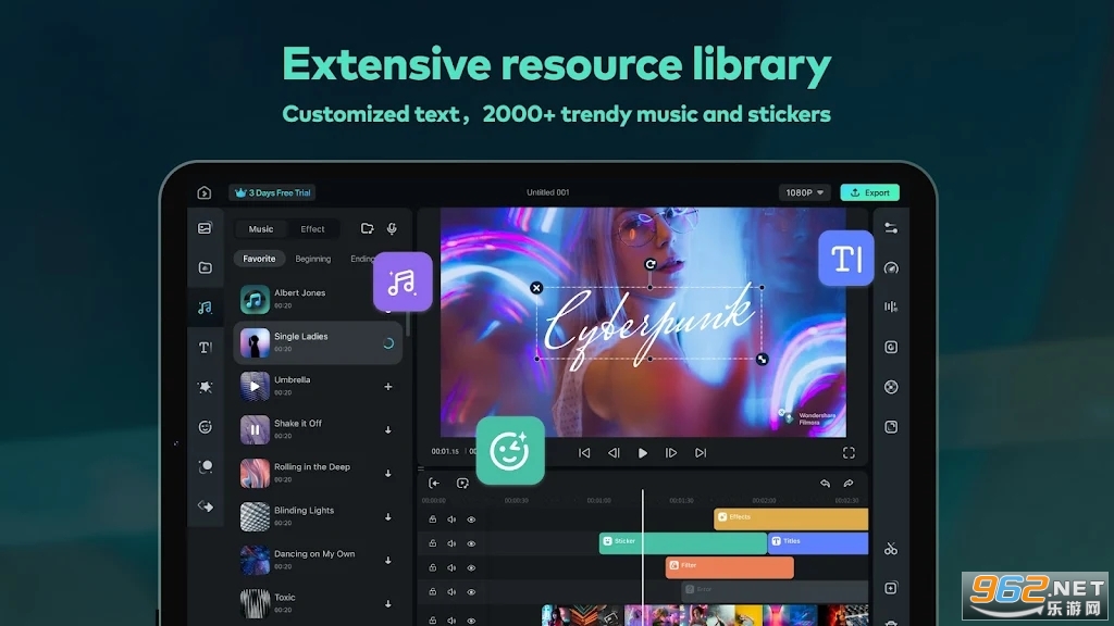 《Filmora HD》一款多功能的视频编辑工具,旨在满足创意项目的需求。无论您需要制作快速简单的视频还是编辑专业水平的影片,Filmora都可以胜任。软件提供了各种流行的视频模板,可让您的项目看起来更加引人注目和专业。您可以轻松编辑视频、添加音乐和音效,或者导入自己的音乐来增强视频效果。Filmora视频编辑器易于使用,特别适合在平板电脑上制作高质量的视频。