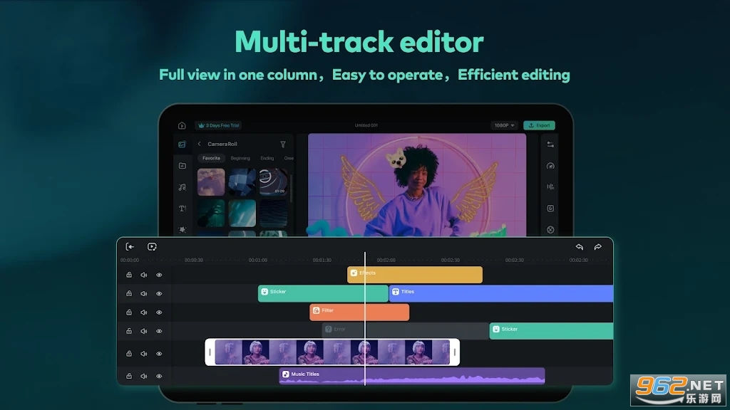 音频: 音乐、音效、配音、混音,多条音轨轻松编辑