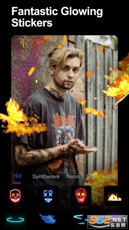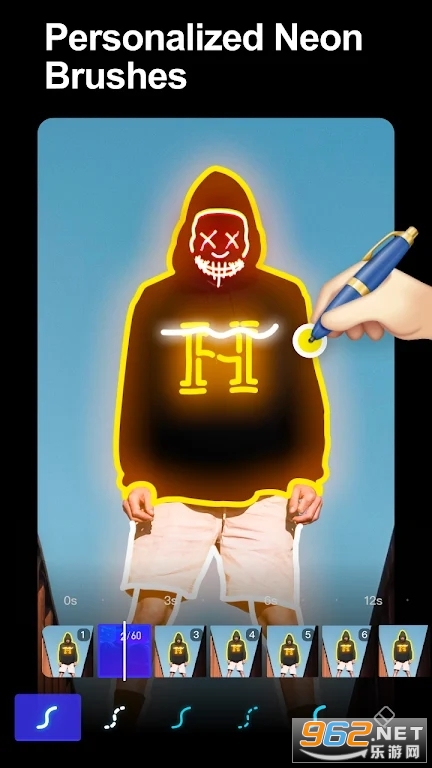 .强大的工具集- 霓虹笔刷、霓虹贴纸、发光标志、复古滤镜、过渡效果等。