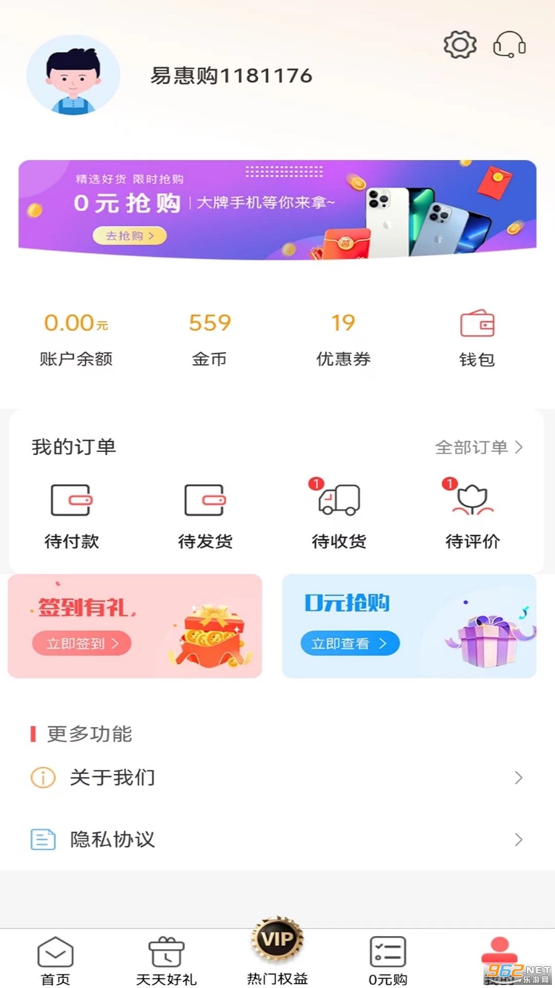 易惠购是一个综合服务平台,汇聚了更多精选好物和生活权益。它提供便捷的购物体验,并为用户提供优惠和特权。让大家可以优惠购物,快来下载吧!